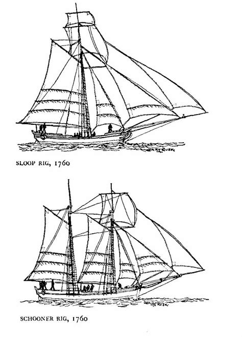 • Sloop: Used for fishing, coastal transport, and privateering.