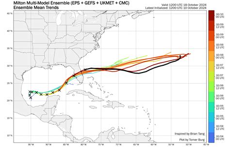 • Forecast Points: Each point on the track line usually shows the storm’s predicted position at a certain time, such as every 12 or 24 hours. These points also include information on the storm’s intensity, such as its wind speed and pressure.