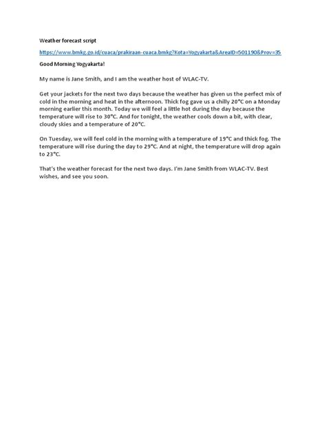 Hey everyone! Ever wondered what goes into crafting those slick, informative weather forecast news scripts in English? Whether you’re aspiring to be a meteorologist, a broadcast journalist, or just curious about how the pros deliver that crucial weather information, you’ve come to the right place. We’re diving deep into the nitty-gritty of weather forecast news script English , breaking down everything from the essential components to tips for making your delivery engaging and clear. Think of this as your go-to guide, packed with insights and practical advice to help you master the art of weather reporting. We’ll cover the standard structure, the lingo you need to know, and how to present complex meteorological data in a way that’s easy for everyone to understand. So grab a coffee, get comfortable, and let’s get started on unraveling the secrets behind a great weather forecast!