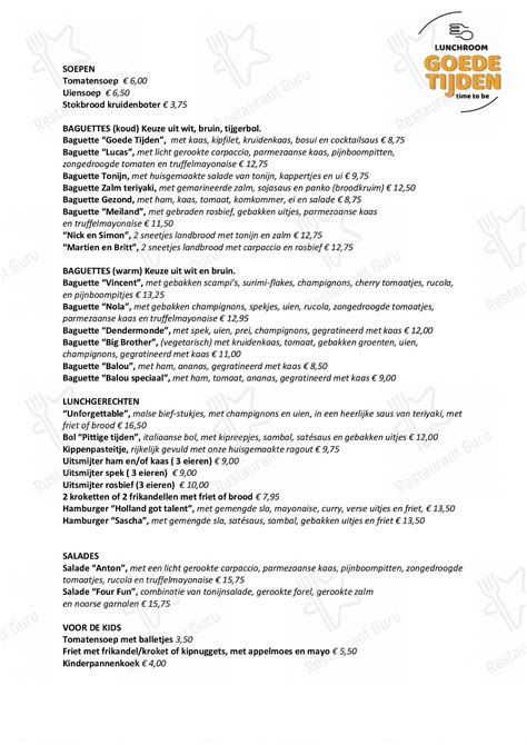 Hey foodies! Are you ready to embark on a culinary journey in the beautiful city of Roermond? Well, Goede Tijden Roermond is the place to be! This restaurant has been a local favorite for years, and for good reason. Their menu is filled with all sorts of deliciousness that will surely satisfy your cravings. Let’s dive right in and explore what makes their menu so special. This article explores the amazing menu offered at Goede Tijden in Roermond, offering a delightful experience for food enthusiasts. We’ll take a close look at their diverse offerings, from appetizers to desserts, and everything in between. Get ready to have your taste buds tantalized as we explore the culinary delights that await you!
