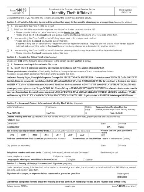 3. Complete IRS Form 14039, Identity Theft Affidavit