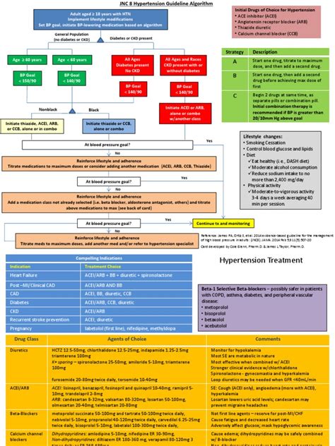 Another significant aspect of JNC-8 was the emphasis on using specific classes of medications as first-line treatments for hypertension. The guidelines recommended thiazide-type diuretics, calcium channel blockers, angiotensin-converting enzyme (ACE) inhibitors, or angiotensin receptor blockers (ARBs) as initial therapy options. This recommendation was based on evidence from clinical trials demonstrating the efficacy and safety of these medications in reducing cardiovascular risk. However, the choice of medication should be individualized based on patient characteristics, co-existing conditions, and potential drug interactions.