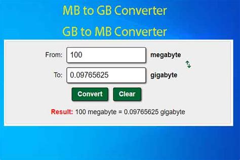 2. From Megabytes (MB) to Gigabytes (GB): Similarly, since 1 GB = 1024 MB, to convert MB to GB, you also need to divide the number of megabytes by 1024. Formula: Gigabytes (GB) = Megabytes (MB) / 1024