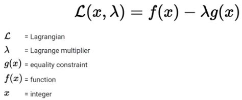 Mathematically, if we want to optimize a function f(x, y) subject to the constraint g(x, y) = c , we form the Lagrangian: