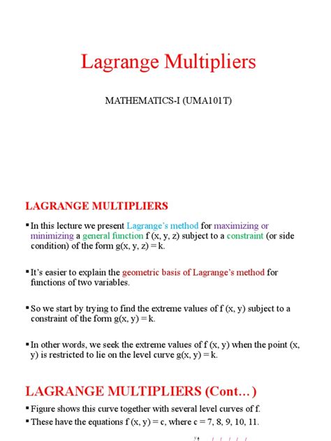 First things first, you gotta know what you’re trying to optimize and what rules you have to follow. Clearly define your objective function, let’s call it \(f(x, y, ext{...})\) , which you want to maximize or minimize. Then, identify your constraint(s). If you have one constraint, write it in the form \(g(x, y, ext{...}) = c\) , where \(c\) is a constant. If you have multiple constraints, say \(g_1(x, y, ext{...}) = c_1\) and \(g_2(x, y, ext{...}) = c_2\) , you’ll need a separate Lagrange multiplier for each constraint.