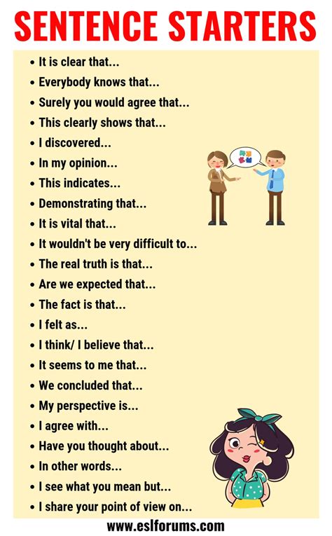 Alright, let’s talk about why these common sentence starters are absolute game-changers for anyone learning English. First off, they provide a scaffold for your thoughts . Imagine you have a great idea, but you’re stuck on how to present it. A good sentence starter acts like a helpful guide, pointing you in the right direction. For instance, if you want to express an opinion, starting with “In my opinion,” or “I believe that…” immediately frames your statement and tells your audience what’s coming. This clarity is super important, not just for the person receiving your message, but for you too! It helps organize your thinking process. Instead of just blurting out words, you’re building a structured argument or narrative. Another massive benefit is that they boost your fluency and confidence . When you don’t have to constantly pause and search for the perfect opening, your speech and writing become smoother. This reduction in hesitation makes you sound more natural and, frankly, more impressive! It’s like having a cheat sheet for common situations. You know how to start when you agree, disagree, want to give an example, or compare things. This predictability, in a good way, removes a lot of the anxiety associated with speaking or writing in a second language. Furthermore, sentence starters are invaluable for improving clarity and coherence . They act as signposts, helping your reader or listener follow your train of thought. Phrases like “Firstly,” “Secondly,” “Furthermore,” and “In conclusion,” clearly indicate the structure of your argument or the progression of your ideas. This makes your communication much easier to understand and digest. For academic writing, they are practically essential for maintaining a formal tone and logical flow. Even in casual conversations, using them appropriately can make you sound more articulate and thoughtful. So, in a nutshell, if you want to write better, speak more confidently, and be understood more easily, mastering common sentence starters is a fantastic step. They’re not just fancy words; they are practical tools that empower you to communicate effectively.