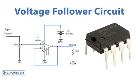 A voltage follower , also known as a buffer, is a special case of the non-inverting amplifier where the feedback resistor is replaced with a direct connection from the output (pin 6) to the inverting input (pin 2). This results in a gain of one, meaning the output voltage is equal to the input voltage. The voltage follower is used to isolate a circuit from its load, preventing the load from affecting the signal source.