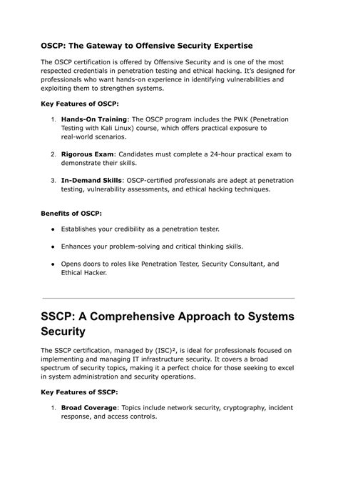 Now, let’s talk about the SSCP . This one is a bit different from the OSCP. It’s a more broad-based security certification, suitable for those who want a solid foundation in IT security. It’s offered by (ISC)², the same organization that offers the CISSP (Certified Information Systems Security Professional). The SSCP covers a wide range of security domains, including access controls, risk management, incident response, and more. It’s a great option if you’re looking to move into a security-related role but don’t want to specialize in penetration testing. It validates your technical skills and knowledge to implement, monitor, and administer IT infrastructure using security best practices. The SSCP is often seen as a stepping stone to more advanced certifications like the CISSP. It provides a solid understanding of fundamental security principles and prepares you for more advanced topics. It is valuable because it shows that you have the skills to implement and manage IT infrastructure using security best practices, and it’s a great choice if you’re planning a career in security.